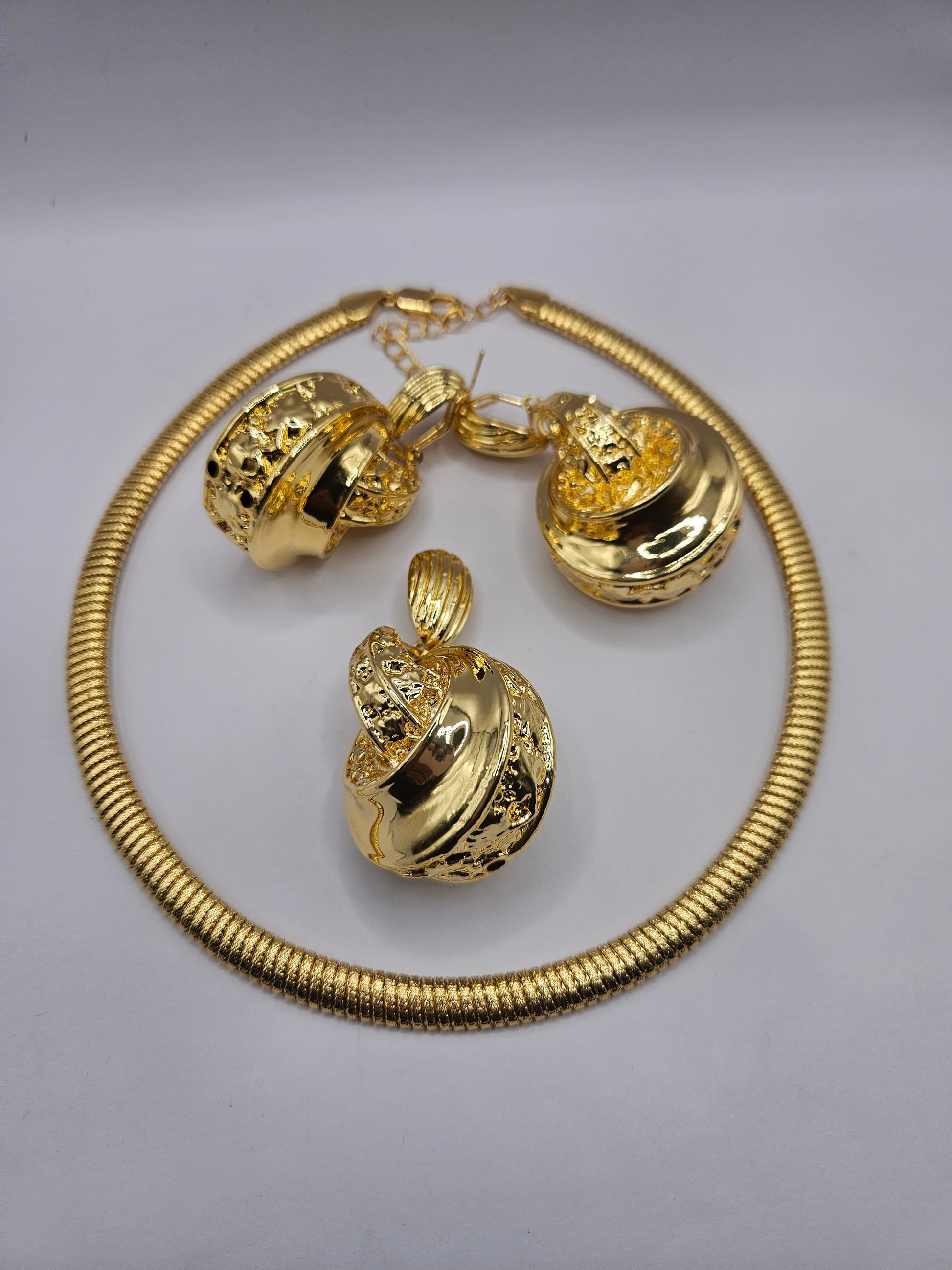 Gold-Plated Statement Necklace & Earrings Set – Luxe Spiral Sphere Design