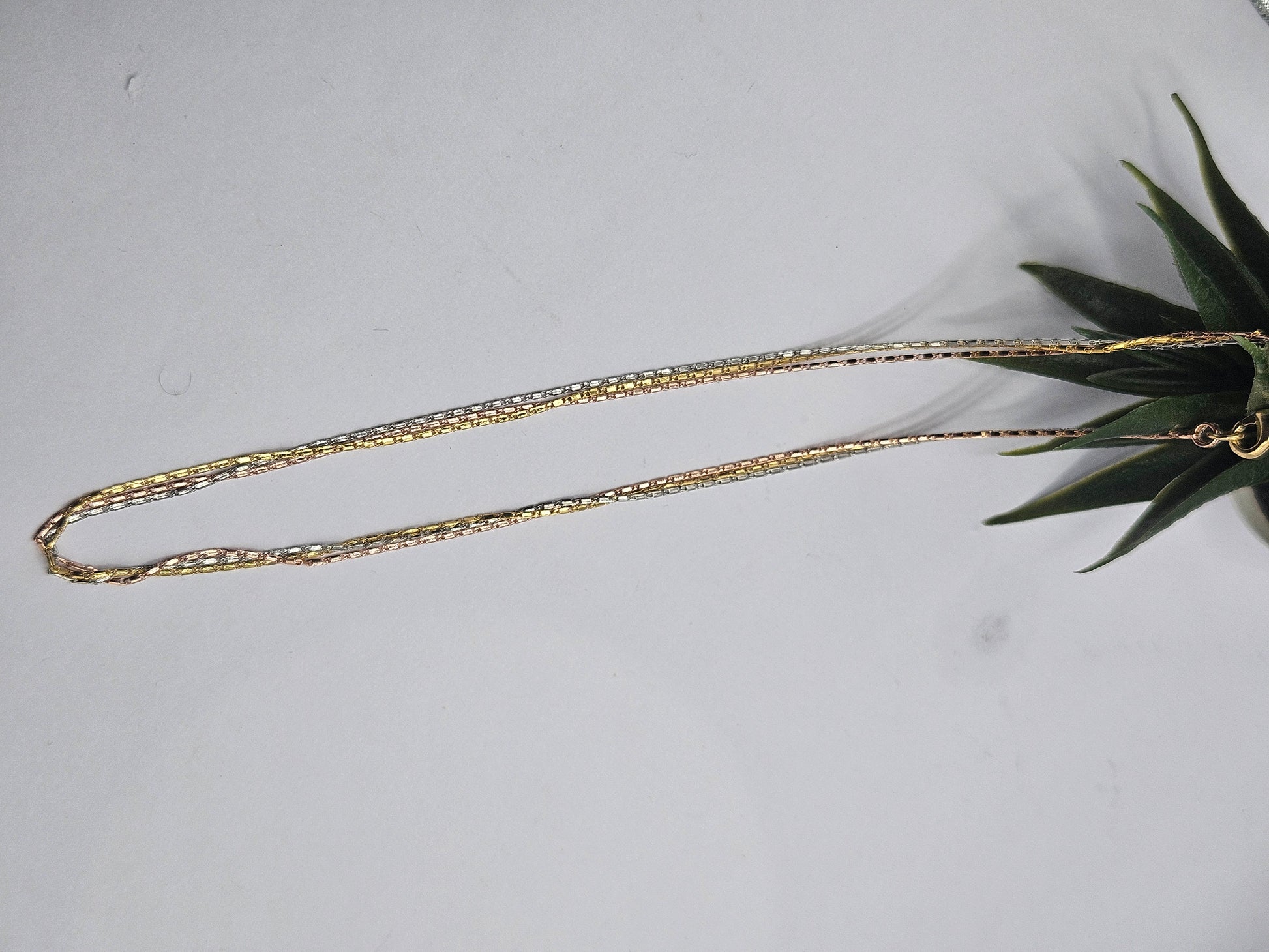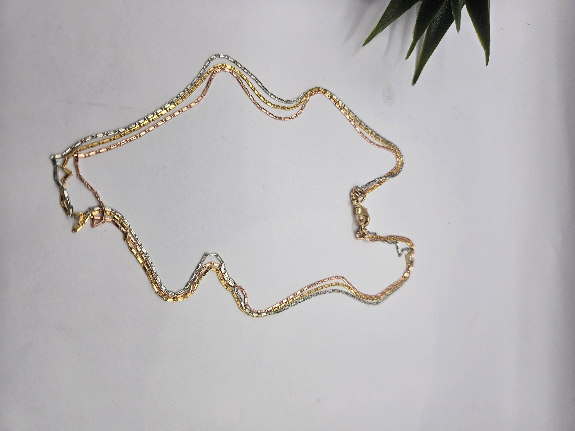 An effortless addition to any outfit, this tri-color chain is ideal for casual wear, work ensembles, or a polished evening look.
